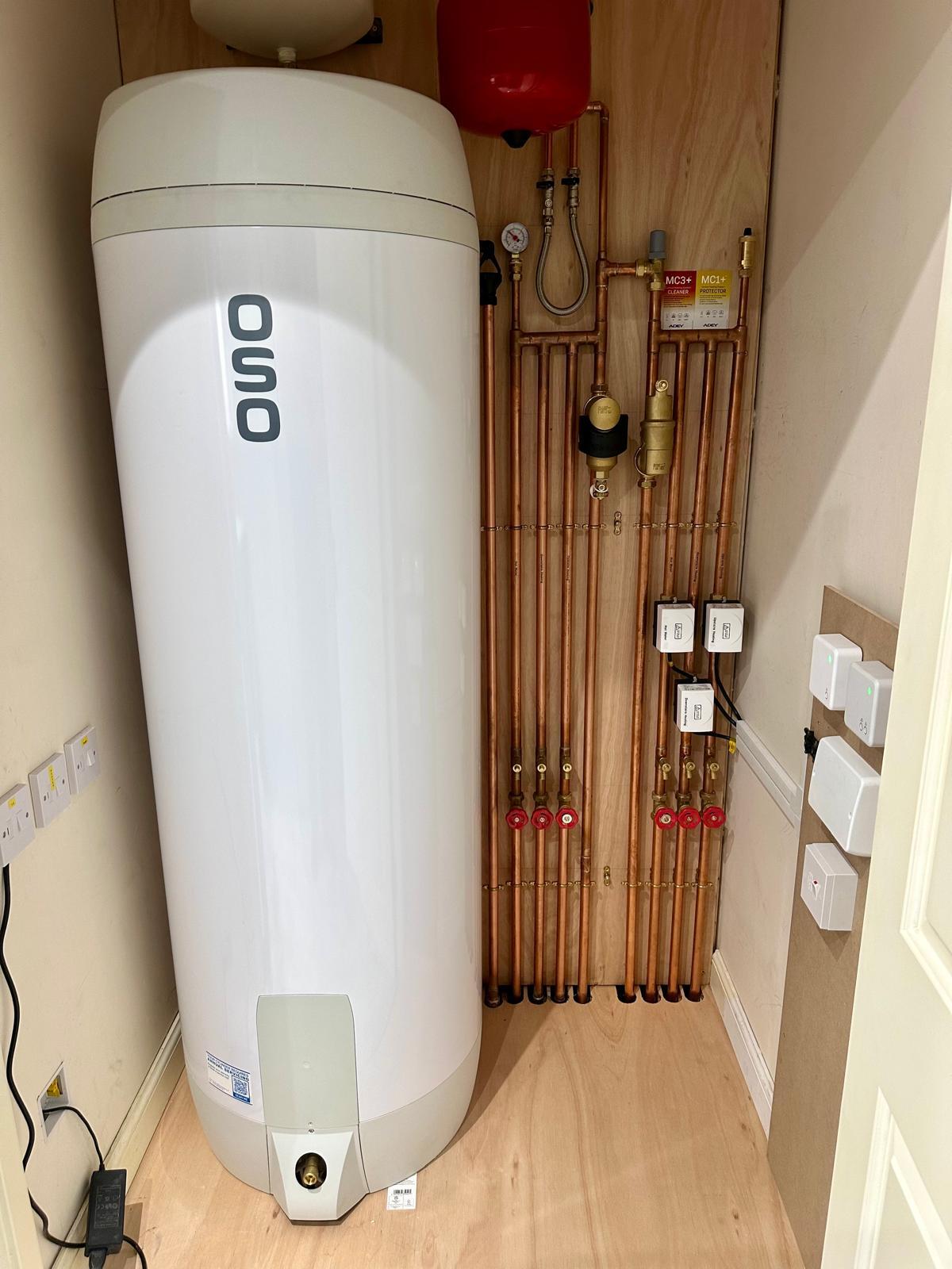 We work with modern unvented hot water cylinders or thermal stores, often heated by a gas boiler, heat pump, or immersion heater, to provide a steady hot water supply. Perfect for homes with multiple bathrooms or high hot water demand.